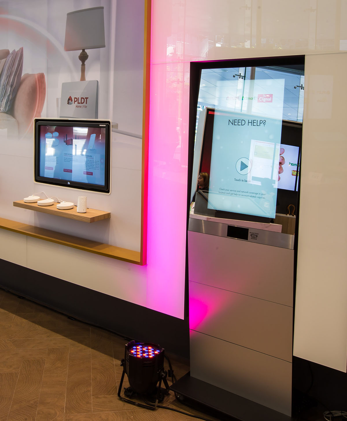This application is basically an information help tool for PLDT and SMART customers. This shows all the latest products and services of PLDT and SMART. The customers can check and print their billing summary here. They can also report a trouble, check if their location is covered by PLDT and SMART services, and many more. This is connected to the different APIs of PLDT and SMART. Data analytics is also present here, we count the number of clicks, number of bill requests, number of report requests, etc. It is currently deployed in One Digital Stores (PLDT/SMART/Cignal) here in the Philippines.