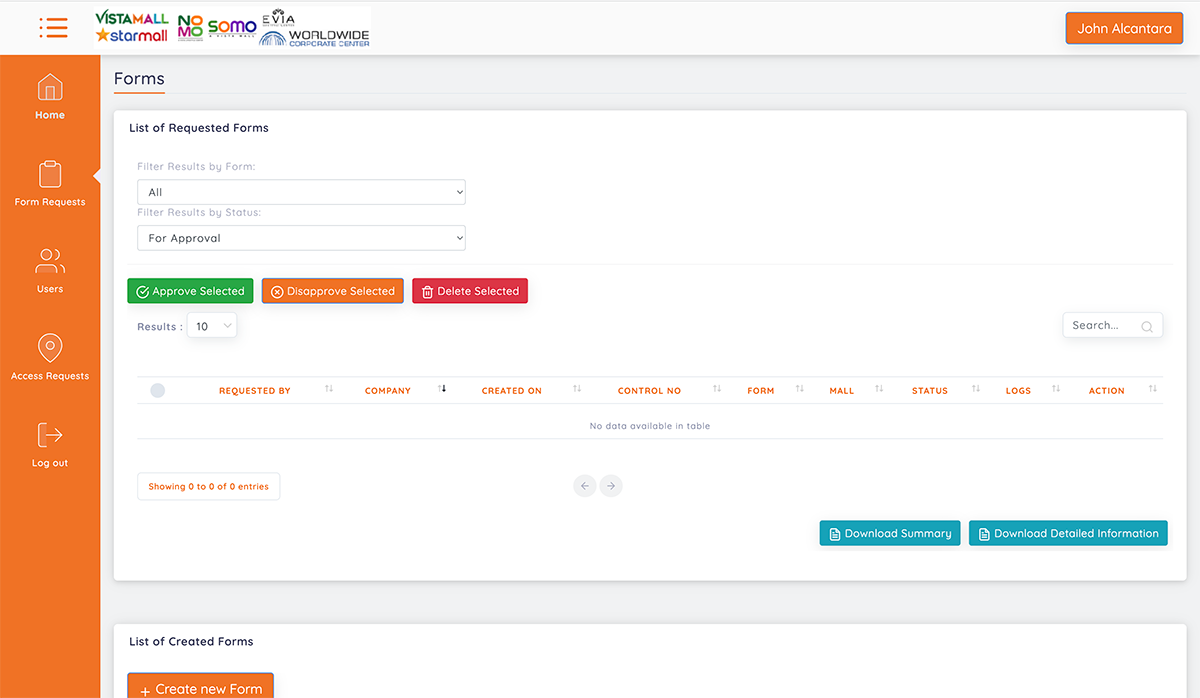 This tool was created when pandemic started. This was developed mainly for VistaMall tenant clients. This was created in order to reduce close contact between the admin and clients. Clients can request for the gate pass online.