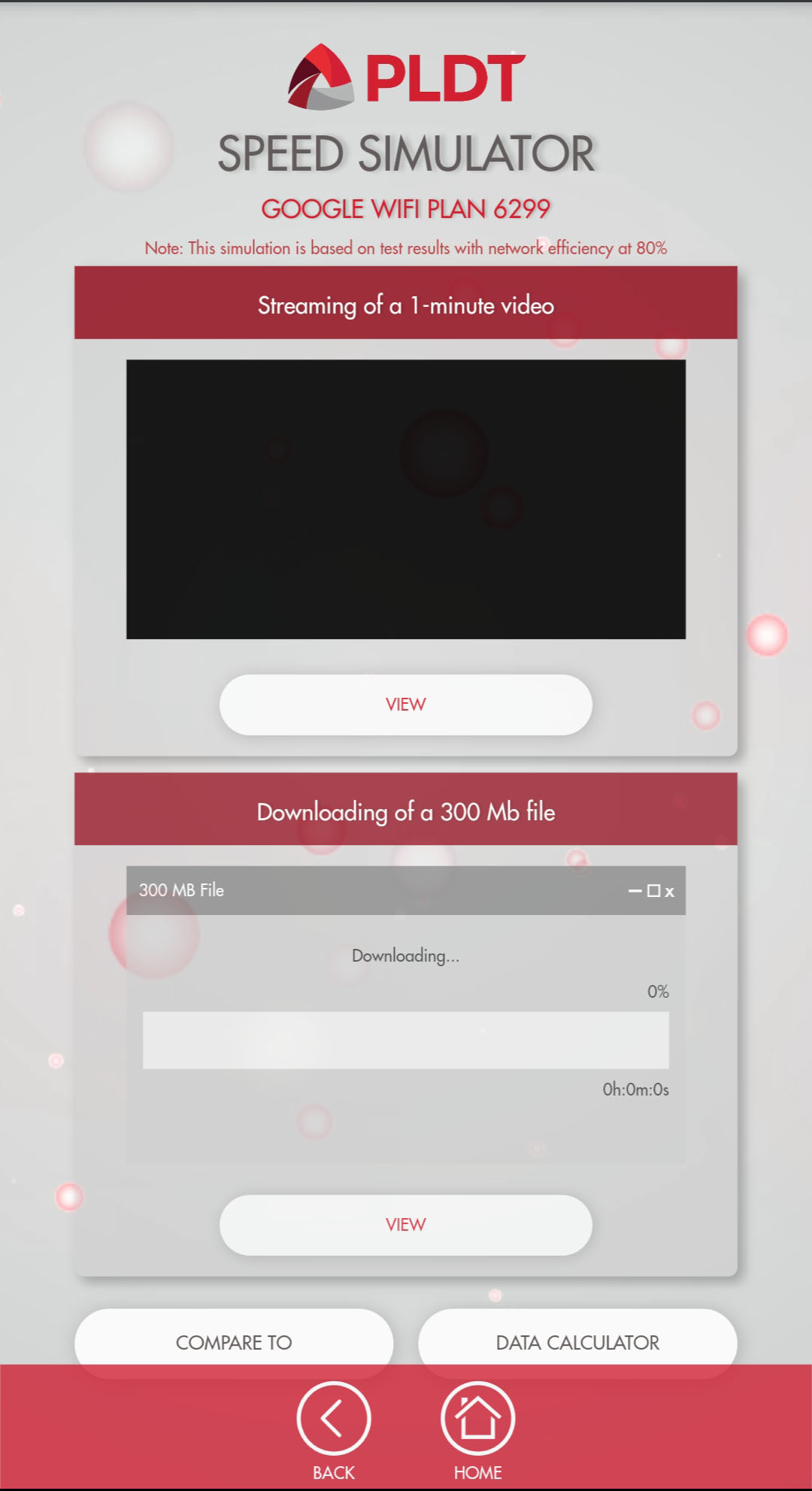 This application will help the customer to calculate their data usage based on their online activities. It will tell you if you exceed the volume allowance of your preferred plan. There's also simulator page here in which the customer can visualize how fast their preferred plan is. It shows the simulation of 'downloading of a 300mb file' and 'streaming of a 1-minute video'. Data analytics is present here.